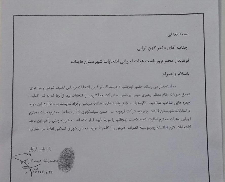 دیمه کار: از کاندیداتوری مجلس شورای اسلامی انصراف داده بودم